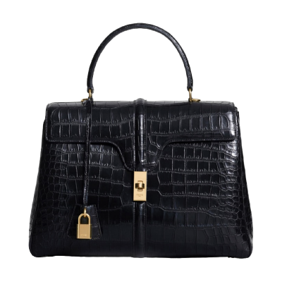 13 x 9 x 5英寸(32 x 23.5 x 13厘米)99.99%鳄鱼皮(湾鳄)99.99%小羊皮衬里金色金属件黄铜旋转锁扣*内*中央拉链袋扁平口袋 2个*内*隔层正面翻盖下外置扁平口袋可拆卸皮革肩带长18英寸(46厘米)编号:187374BF3.31AN