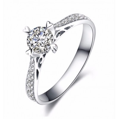 ZOCAI/佐卡伊 情定威尼斯 白18k金四爪钻戒女求婚结婚钻戒婚戒 定制