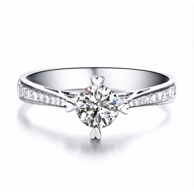 首页 > 珠宝首饰 > 戒指/指环 > ZOCAI/佐卡伊 情定威尼斯 白18k金四爪钻戒女求婚结婚钻戒婚戒 【定制】
