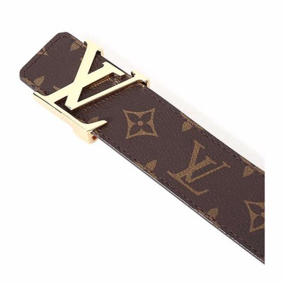 Louis Vuitton/路易威登 棕色老花金扣涂层帆布配皮中性款式宽度4cm腰带 M9608