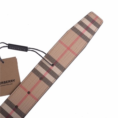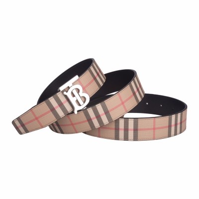 BURBERRY 男士经典卡其色双面会标图案复古格纹TB标识皮带腰带 8021957