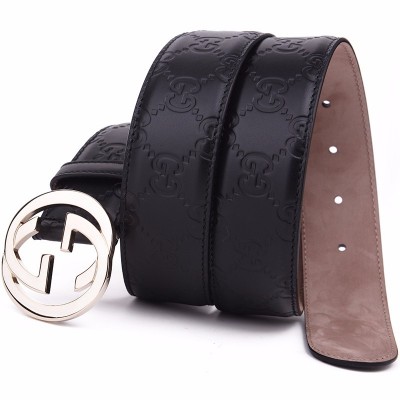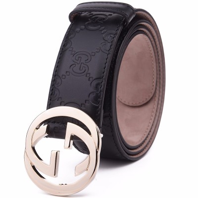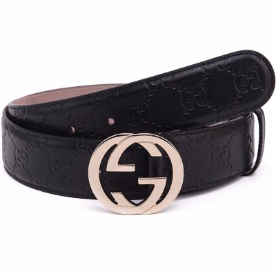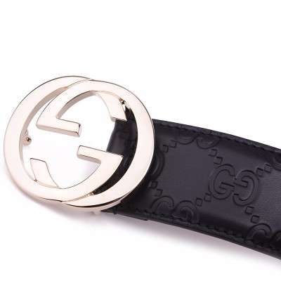 GUCCI/古驰 黑色金扣牛皮宽度3.7cm中性款式腰带370543 CWC1G