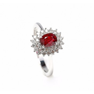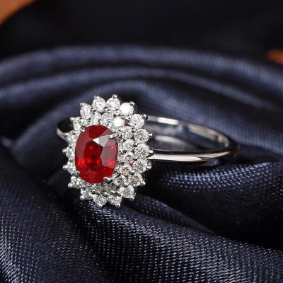 Daisy Fellowes/黛西法罗 18K金钻石红宝石戒指 蛋面彩宝围钻女戒