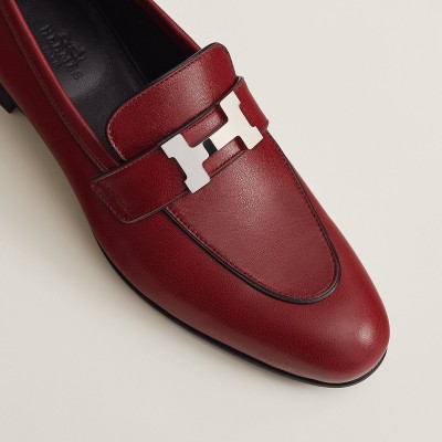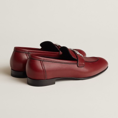 Loafer in goatskin with palladium-plated signature "H" detail and contrasting Nappa leather piping.