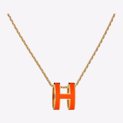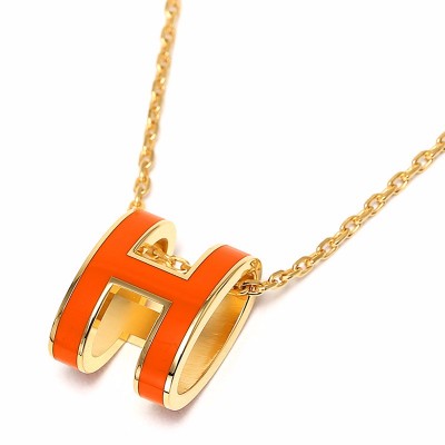 HERMES/爱马仕  项链 POPH 橙色吊坠  金色,银色项链