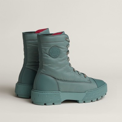 Water repellent ankle boot in calfskin and light parachute fabric with rubber sole.