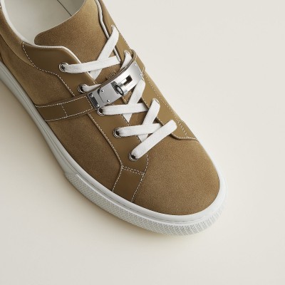 Sneaker in suede goatskin and calfskin with functional palladium-plated Kelly buckle.