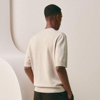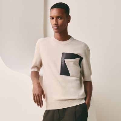 Short-sleeve crewneck t-shirt in wool with "Renfort cuir" detail (100% wool)