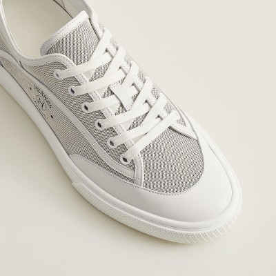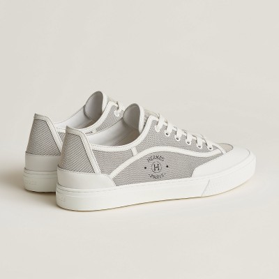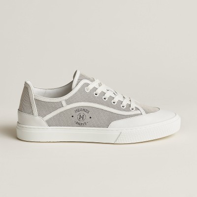 Sneaker in H canvas and calfskin with signature "Hermès Paris" stencil.