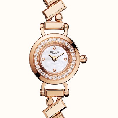 Diamond-set rose gold case, 15 mm diameter, 28 diamonds (0.2 ct)