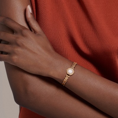 Diamond-set rose gold watch, quartz movement, diamond-set white mother-of-pearl dial, rose gold bracelet