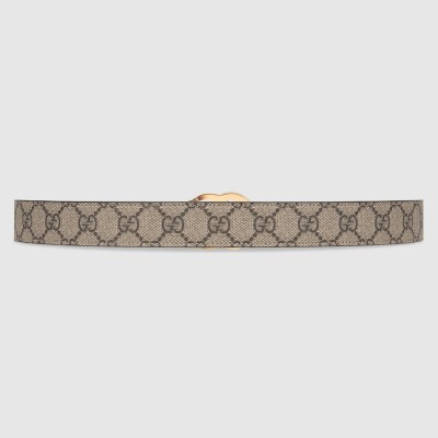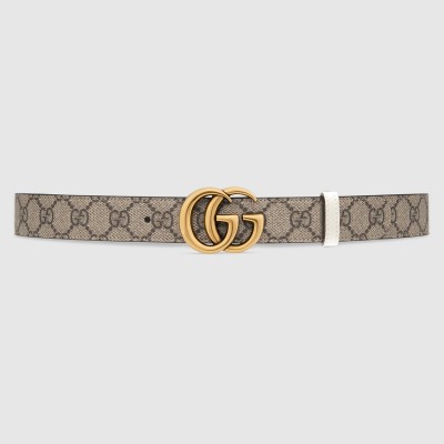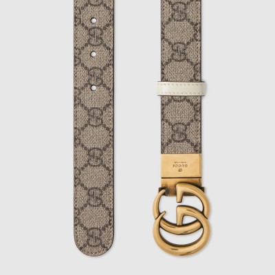 Evolving season after season, the GG Marmont's recognizable design blends the ‘70s GG hardware with contemporary styles. This GG Supreme canvas belt reverses to white leather offering an alternative look.