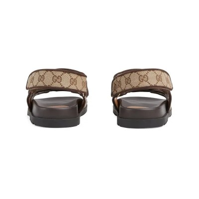 This piece from the Gucci Lido collection is inspired by summer on the Italian coast and beach clubs. Modern and sporty, this flat sandal has a hook-and-loop closure for a comfortable feel. Crafted from beige and ebony GG canvas, this accessory features a strap embellished with a subtle Double G hardware.
