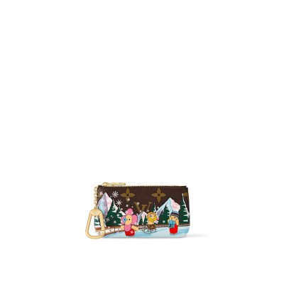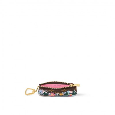 This key bag depicts the brand's mascot Vivienne and her friends skating on the ice, with Monogram flowers transformed into snowflakes in the middle with fine brushstrokes. The Monogram canvas and leather lining create an elegant structure and can also store cash and cards