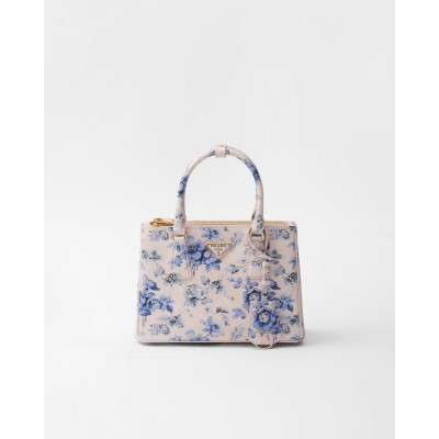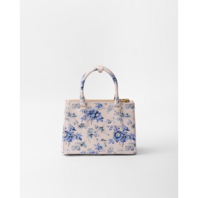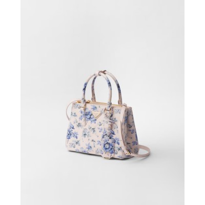 The Prada Galleria bag is a refined and timeless design, built with industrial precision and craftsmanship, a nod to the historic boutique in Milan's Galleria Vittorio Emanuele II in 1913. Made from more than 80 individual parts assembled by hand, this style is versatile and fits the bill, making it the perfect choice for a fresh take on fashion. Featuring three iconic pockets, this accessory showcases the distinctive cross-grain and waxed sheen of Saffiano leather, paired with a romantic floral print that accentuates its fluid and elegant silhouette.