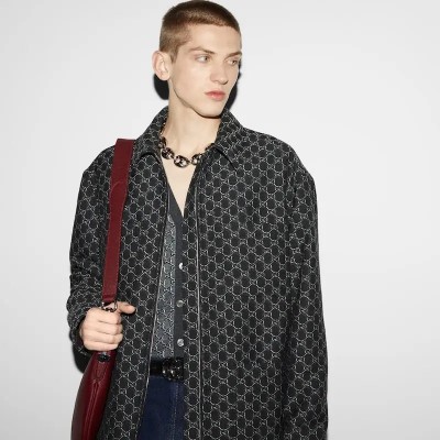 In the 2024 autumn and winter series, creative director Sabato De Sarno takes durability and fitted tailoring as the main concepts to carefully create men's basic items and inject new ideas into men's wardrobe. Crafted from gray and black wool, this jacket is embellished with a light-and-shadow GG monogram, a nod to the brand's archives.